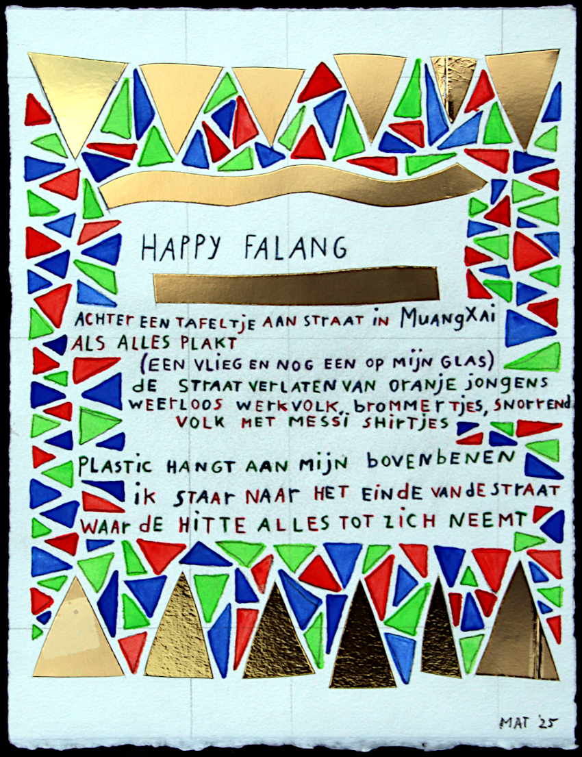 " Happy falang" 2025 potlood-aquarel-papier 32,5-25 cm |
