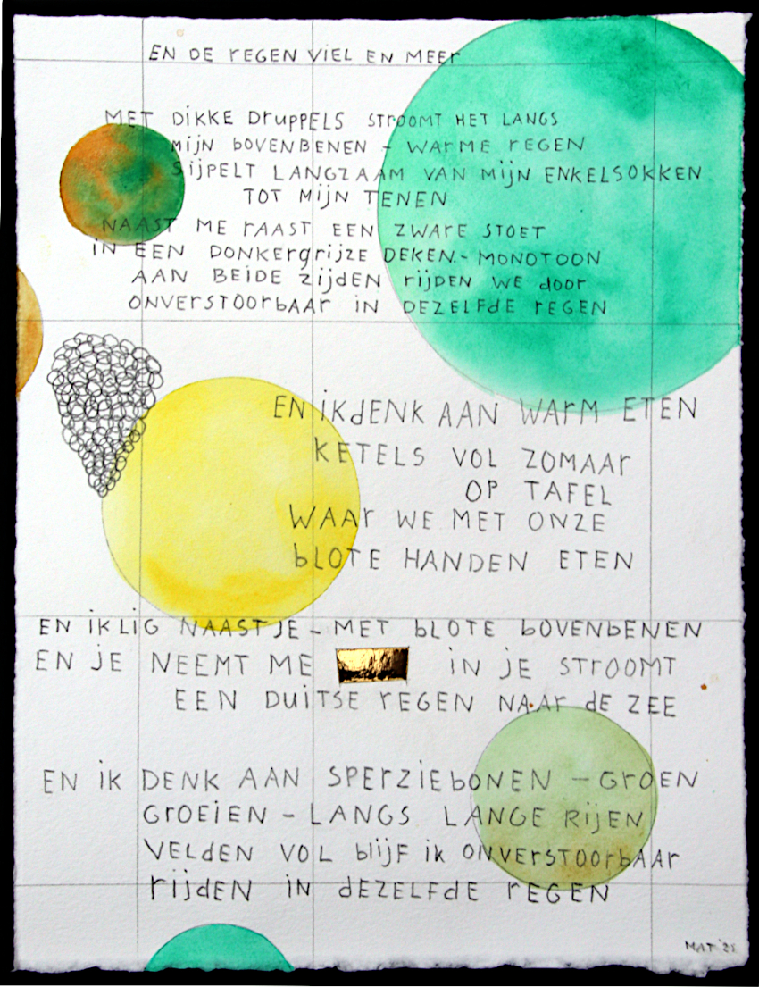 " En de regen viel en meer" 2025 potlood-aquarel-papier 32,5-25 cm |