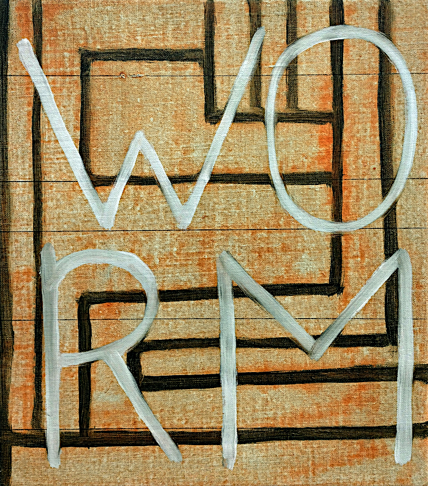achtergrond het woord WORM stond geschilderd. Structuur versus