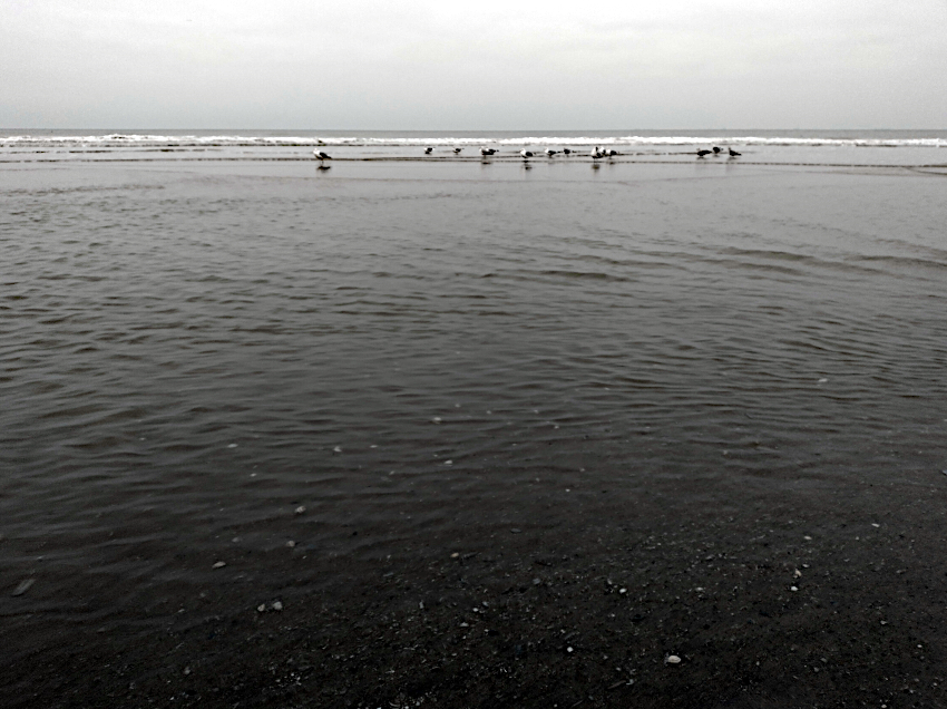 Zojuist parelden nog enkele tranen op het tafellaken, nu staan we hier. Op deze grijze, windstille dag staar ik in de namiddag naar enkele schepen die aan de verre horizon langzaam opgaan in een ongewisse wereld. Een lading jeugdige onbevangenheid aan boord. Met de rug naar zee, overzien we even later vanaf een oude uitkijkpost aan de linkerzijde een prachtig, glooiend duinlandschap. Rechts van ons gloeit het avondlicht van de bruisende stad. Een wereld aan je voeten. Te wachten. (voor L) |